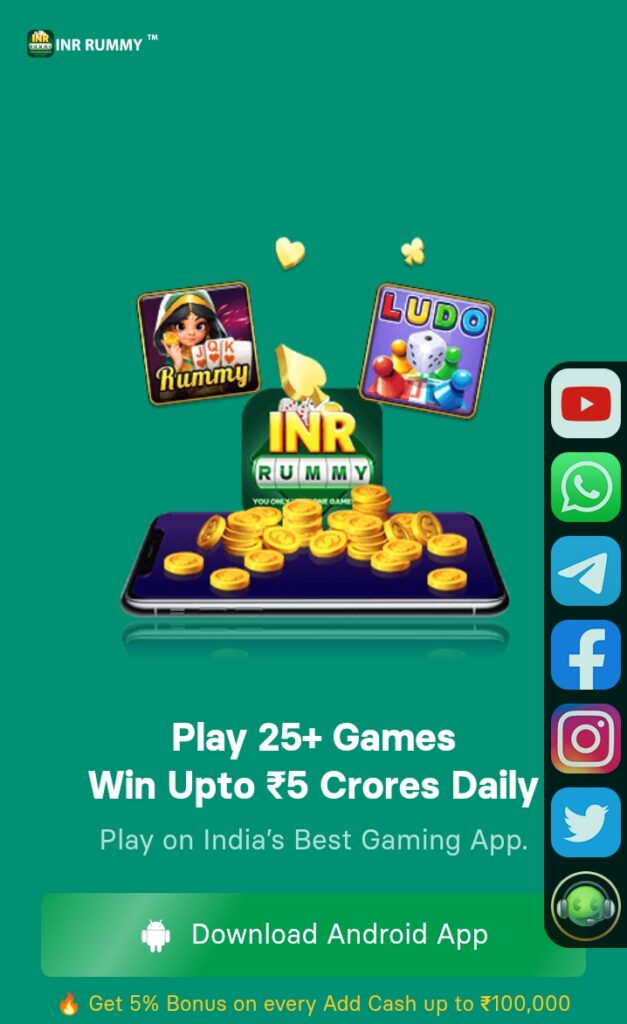 Inr Rummy App Download Sin-Up Get To Bonus ₹200 & Comission inr Rummy App